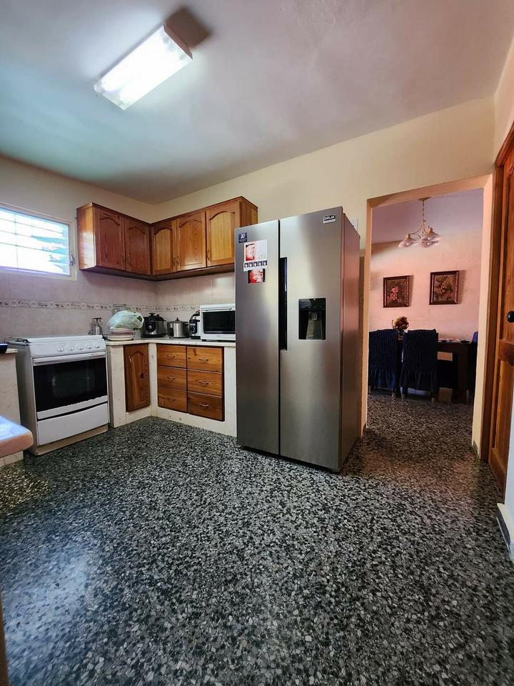 Jardín, Porta, Sala, corredor, Comedor, cocina con Closet despensa muy amplio, saleta, patio trasero con piscina, baño de servicio y ducha aparte, área con fregadero y cocina en el patio, patio lateral grande con espacio para varios autos, pasillo con lavadero y cuarto de lavado, 4 dormitorios & 1/2 amplios con closet y todos climatizados con SPlIT, 2 Baños completos, uno en Suite y otro intermedio entre Dormitorios, closet de servicio para baños y en otro en pasillo que distribuye a los dormitorios.