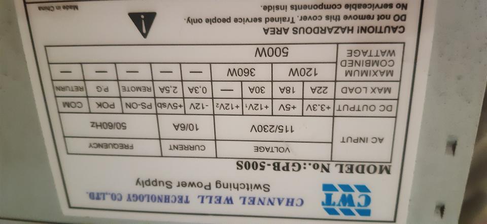 ATX CHANNEL WELL TEGHNOLOGY 500 WATTS Y 30 AMPERES - $30