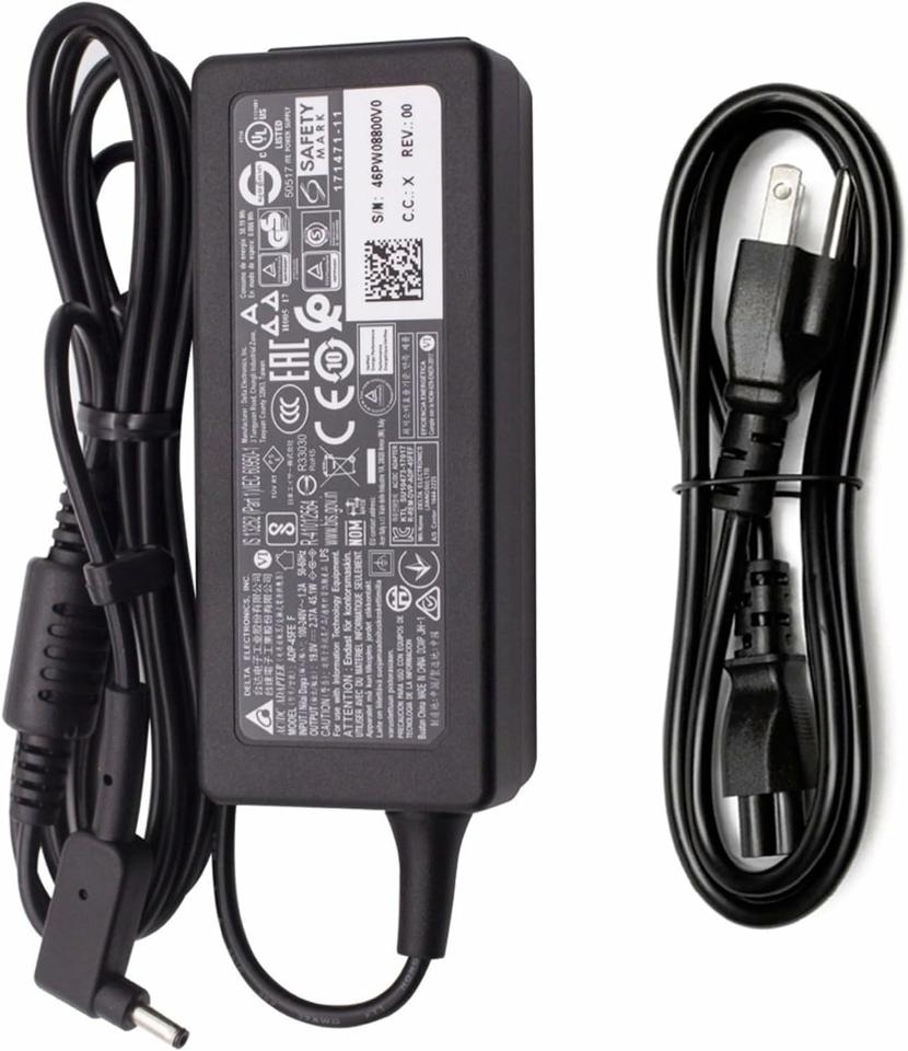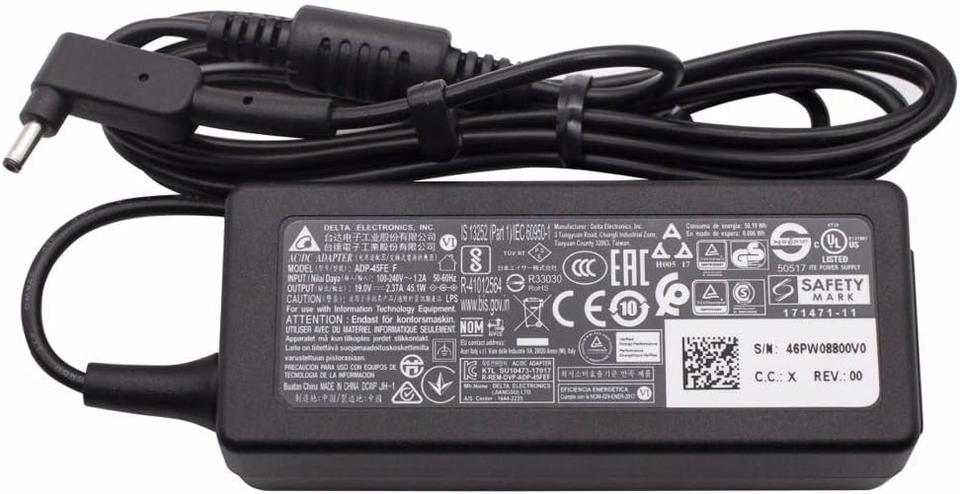 Estamos enviando el adaptador de salida Delta 19V 2.37A 45W con tamaño de pin de 3.0MM x 1.0MM. Comprueba las imágenes del producto cuidadosamente para asegurarte de que estás pidiendo el adaptador correcto. Tenga en cuenta el adaptador: ADP-45FE F El cargador de número de pieza está disponible con 2 tamaños de pin diferentes. Tienen el mismo número de pieza pero su tamaño de conector es diferente. Vendemos este cargador con punta pequeña versión de 0.118 in x 0.043 in de tamaño de pin y este cargador no es compatible con la versión de punta grande de 0.217 in x 0.067 in.