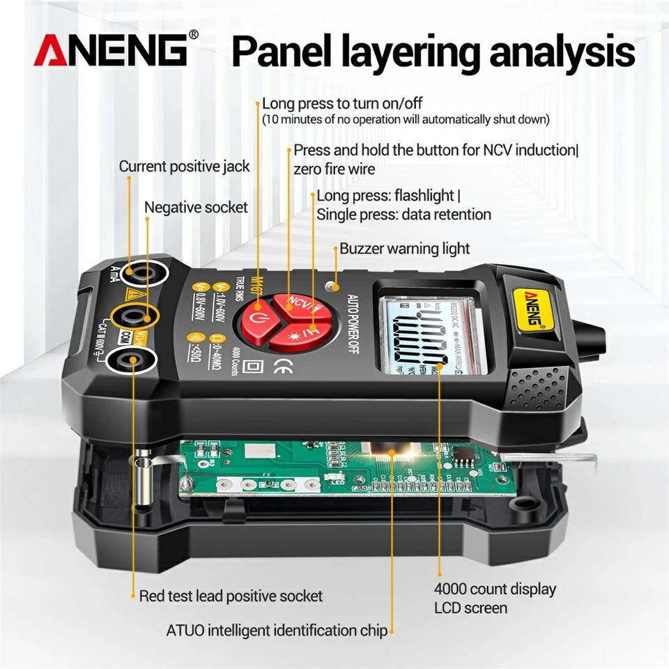 Medidor automático de True Rms, Tranistor con NCV, retención de datos, linterna, y de 4000 recuentos