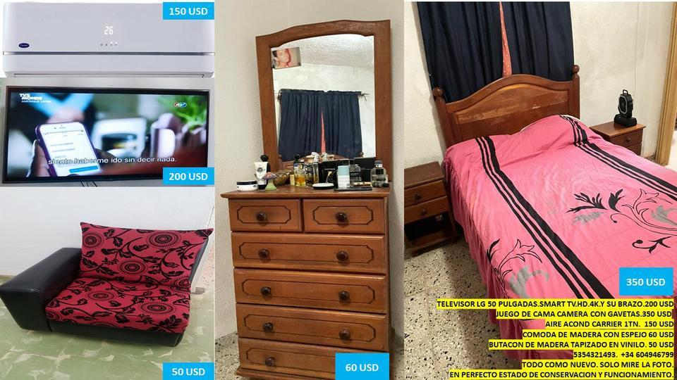 TELEVISOR LG 50JUEGO DE CAMA CAMERA CON GAVETAS.AIRE ACOND - $1